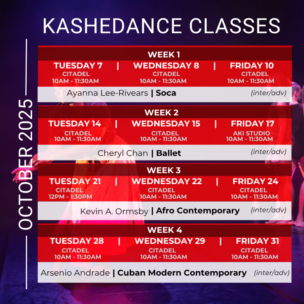 2025 Kalendar You have spoken and we heard you. Never miss another KasheDance event again. Welcome to our new event page. This Fall Events Up Next... Ballet with Cheryl Chan on October 14th Register for this Event Ballet with Cheryl Chan on October 15th Register for this Event Ballet with Cheryl Chan on October 17th Register for this Event